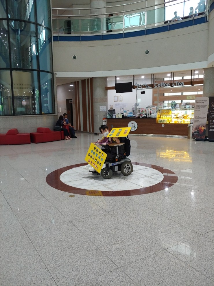 경기도 화성시의 중증장애인 복지정책이 잘못됐다며 10일부터인가 휠체어에 의지한 중증장애인들이 시청사에 매일처럼 집결합니다 시청사 본관 1층 로비와 2층 시장실 앞 복도를 점거하고 구호와 마이크 멘트를 진행하면서 시청사 전체는 소음으로부터의 탈출구를 찾기가 어렵습니다
